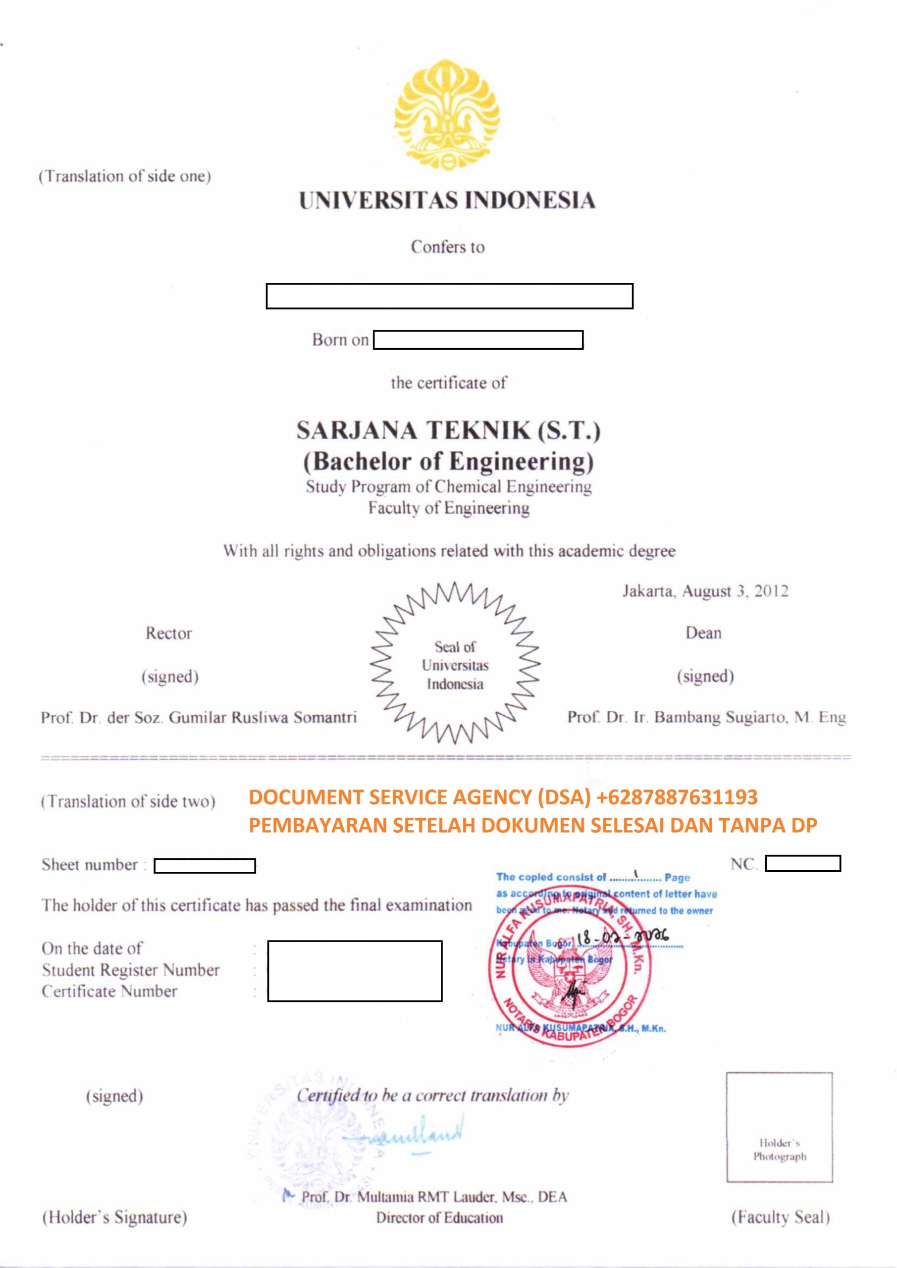 Telp/ Whatsapp : 021 48671259/ +62 878 8763 1193 atau email : documentsserviceagency@gmail.com