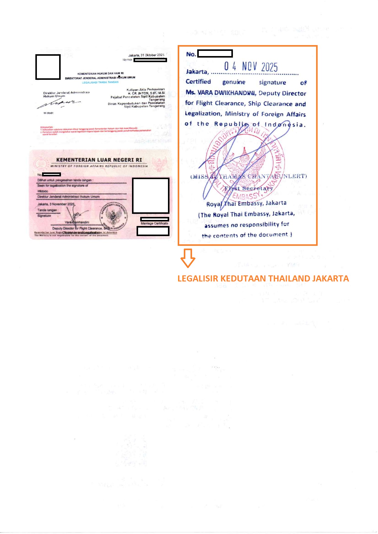 DSA (Document Service Agency) adalah spesialis jasa terjemah, legalisir, atestasi, apostile dokumen untuk keperluan di luar negeri dan pengurusan visa berpengalaman dan terpercaya. Bagi anda yang ingin melegalisir buku nikah di Kedutaan Thailand untuk keperluan pengurusan visa, izin tinggal, pendaftaran pernikahan dan lain-lain. Anda tidak perlu datang ke Jakarta karna pengurusan dokumen anda bisa diwakilakan kepada kami, dengan layanan ” Pembayaran Setelah Dokumen Selesai dan Tanpa DP ” membuat anda lebih nyaman dan aman menggunakan jasa kami.